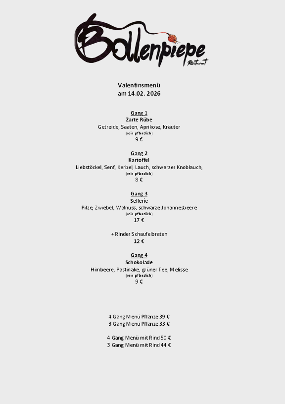 Am 24.01.2026 bleibt das Restaurant für eine Veranstaltung geschlossen. Des Weiteren schließen wir am 07.03.2026 bereits 14:30 Uhr für eine geschlossene Veranstaltung.